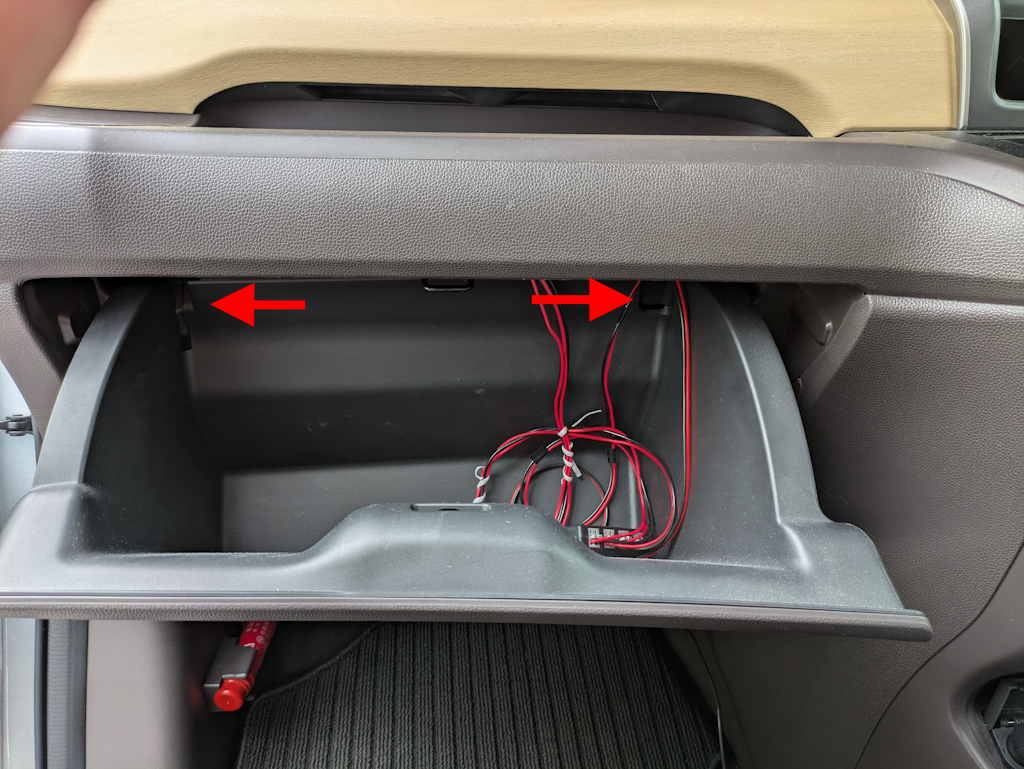 ボックスを外すには赤矢印の部分を押しながらボックスを手前に引きます。