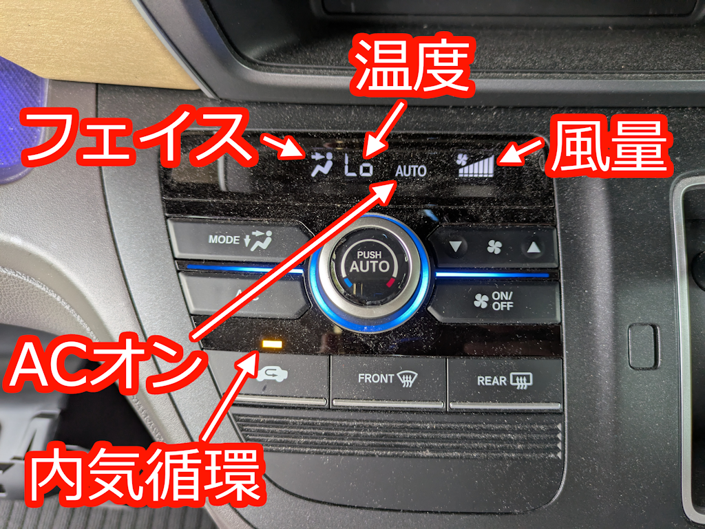 最後にエアコンをON(エンジンON)に設定して5分ほど待機します。