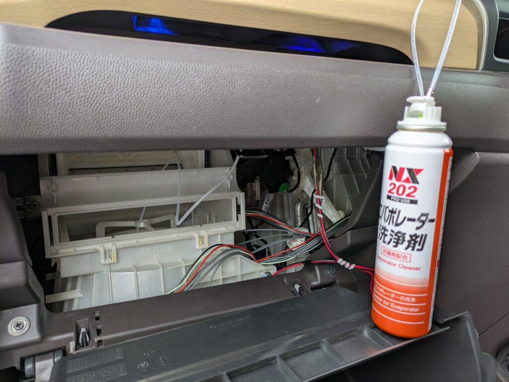 すぐに新品フィルターを装着したいところですが、ここでエバポレーター洗浄を行います。