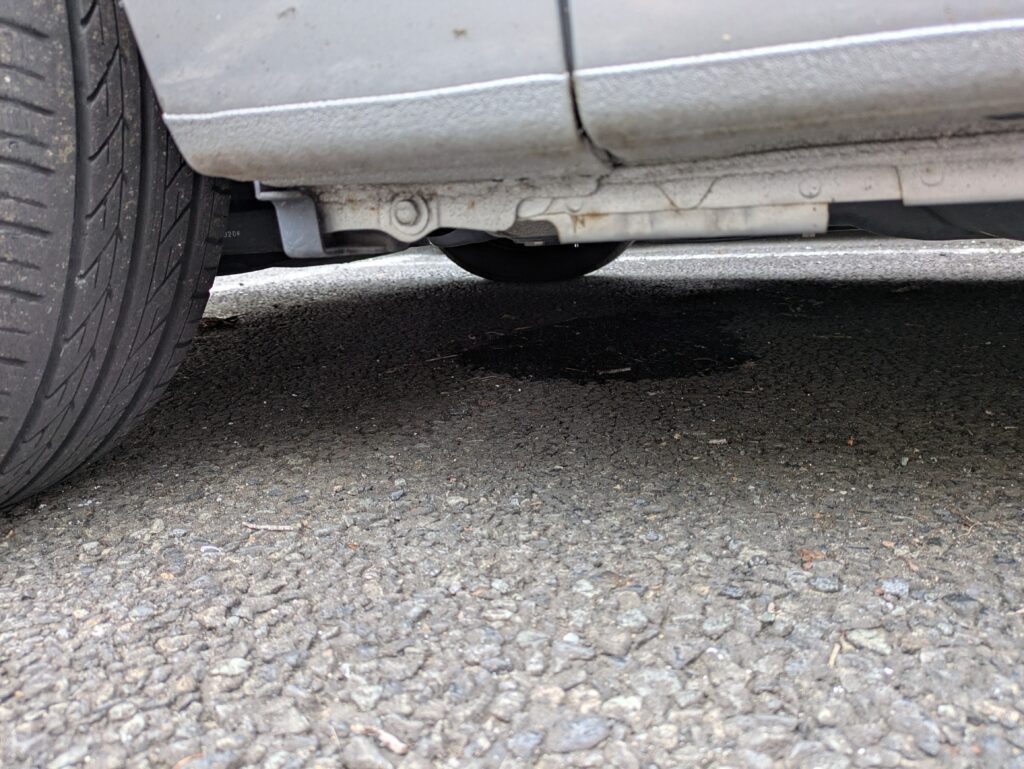 前輪から少し後ろ側、車体中央あたりに排水が落ちてきました。